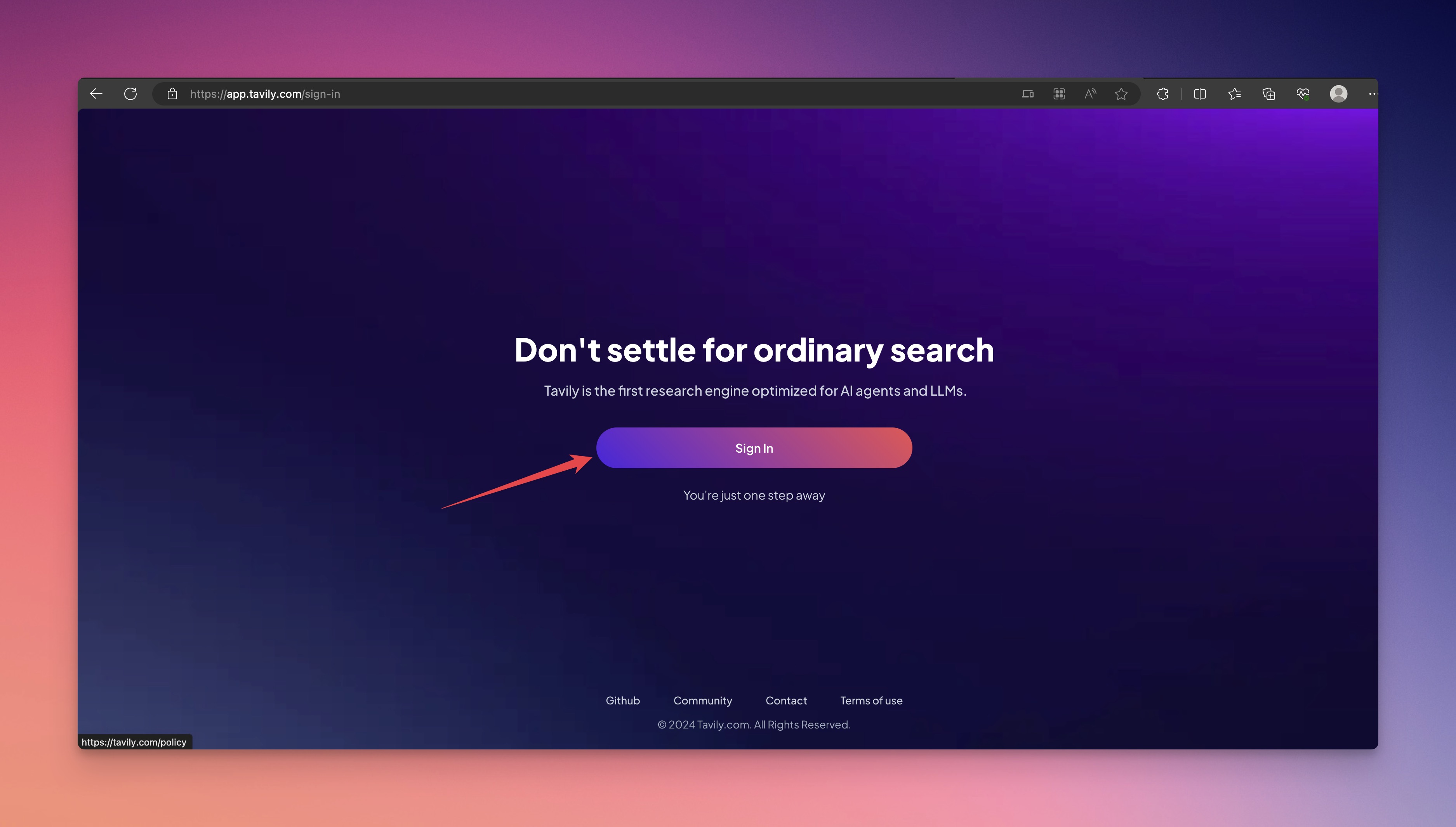 ### Step 1: Go to <https://app.tavily.com/sign-in> and click "Sign In"